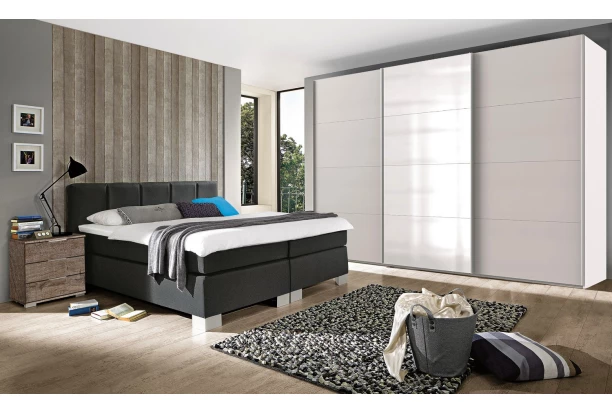Šatník o extra šírke 313 cm s extra výškou 236 cm v kombinácii biela/svetlosivá zo série Easy Plus. Veľké posuvné dvere so zrkadlom umožňujú ľahký prístup do veľkých úložných priestorov, ktoré môžete doplňovať policami podľa Vašej potreby. Skriňa je vhodná do akejkoľvek modernej spálne, šatne alebo chodby.
