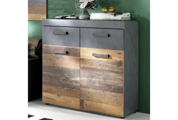 Úložná komoda alebo botník v industriálnom štýle upúta pozornosť už na pohľad skvelou vintage optikou drevených lát a brúseného kovu. Nábytok tak dokonale podčiarkne osobitosť vášho interiéru. Poskytuje univerzálny vnútorný priestor pre ukladanie vecí aj police pre uloženie napr. obuvi.