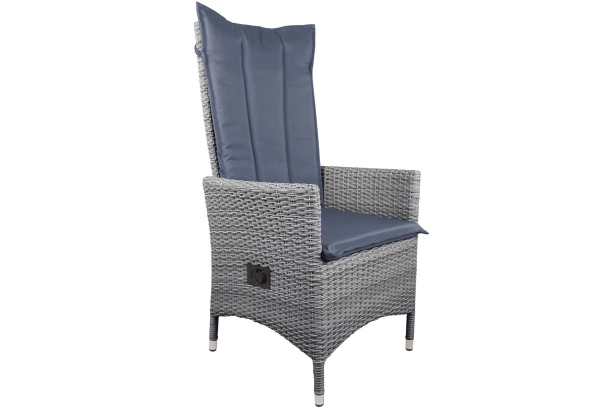 Komfortné záhradné kreslo v imitácii ratanu využijete pri záhradnom stole aj samostatne. Vysoké operadlo je polohovateľné a kreslo tak môžete využiť pri relaxácii alebo opaľovanie. Vrátane mäkkého vankúša.