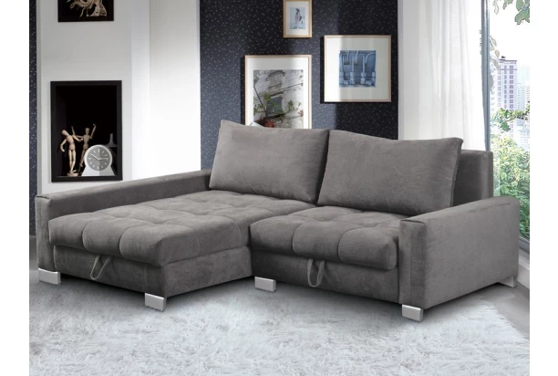 Rohová sedacia súprava Kevin je ideálna aj do malého priestoru. Aj napriek svojej veľkosti ponúka kvalitný komfort, veľký otoman pre pohodovú relaxáciu, úložný priestor aj praktickú funkciu rozkladu na veľmi priestranné lôžko pre dve dospelé osoby, ktoré možno využiť aj na trvalé spanie. Očalúnená mäkkou štruktúrovanou látkou vo farbe popolavá šedá. Sedačka tvorí ľavý roh.