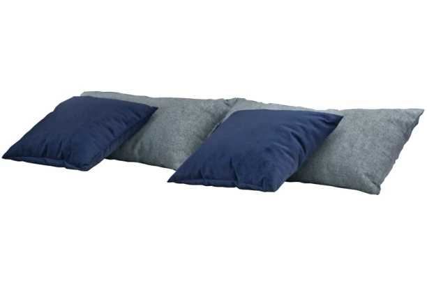 Set 4 kusov vankúšov o dvoch rôznych rozmeroch môžete umiestniť na posteľ i sedačku. Dva vankúše zo šedej melírované tkaniny a dva vankúše z tmavo modrej látky.
