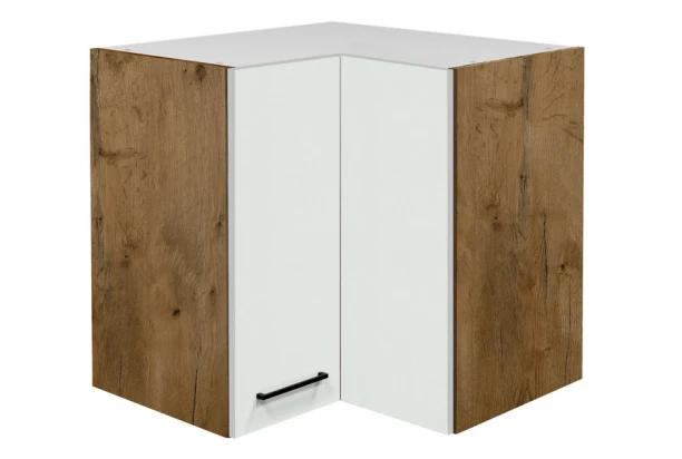 Horná rohová kuchynská skrinka so šírkou 60 cm z moderného kuchynského programu Avila – útulna kombinácii dekoru dub lancelot a svetlo krémovej farby dopĺňa kontrastne čierny úchyt. Elementy kuchynského programu Avila môžete medzi sebou ľubovoľne kombinovať a zostaviť si tak kuchyňu podľa Vašich individuálnych potrieb a priestorových možností.