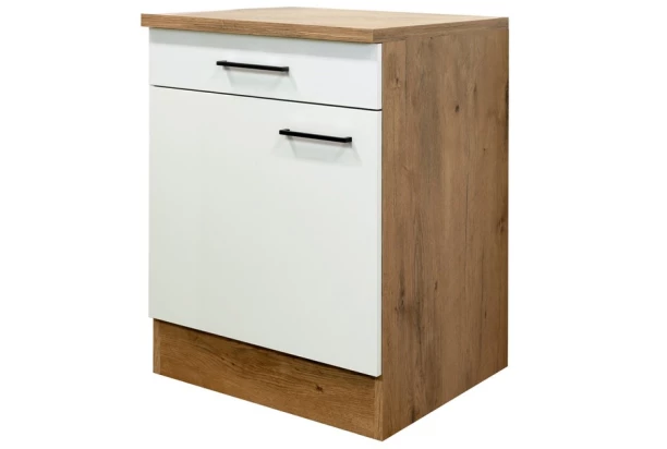 Dolná kuchynská skrinka so šírkou 60 cm z moderného kuchynského programu Avila – útulnú kombináciu dekoru dub lancelot a svetlo krémovej farby, dopĺňa kontrastne čierny úchyt. Elementy kuchynského programu Avila, môžete medzi sebou ľubovoľne kombinovať a zostaviť si tak kuchyňu podľa vašich individuálnych potrieb a priestorových možností.