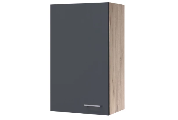 Horná kuchyňská skrinka so šírkou 50 cm z moderného kuchyňského programu Tiago – útulnú kombináciu dekoru dub san remo a šedej farby doplňuje úchyt v šedom alu prevedení. Elementy kuchynského programu Tiago môžete medzi sebou ľubovoľne kombinovať a zostaviť si tak kuchyňu podľa vašich individuálnych potreb a priestorových možností.