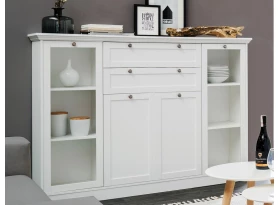 Komoda kombinovaná s dvierkami a zásuvkou z programu Landwood – tradičný biely nábytok s okrasnou rímsou v romantickom vidieckom štýle. Vytvorte si tak pôvabné interiéry s nádychom tradície a s kúzlom atmosféry vidieka.