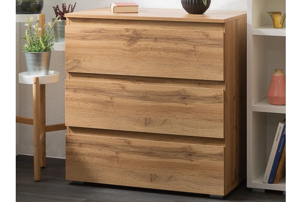 Zásuvková komoda z programu Image – minimalistický dizajn nábytku je úplne univerzálna a hodí sa do každého moderného interiéru. Atraktívny drevodekor v odtieni medového duba dodáva nábytku príjemne hrejivý a útulný vzhľad. Táto skrinka ponúka praktické zásuvky na univerzálne ukladanie rôznych vecí.