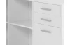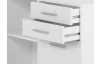- bočná skrinka: 4× otvorená priehradka (2× polica – výškovo nastaviteľná, šírka police 43,5 cm), 2× zásuvka (kovové bočné pojazdy), 1× otočné dvere (otvorený úložný priestor, šírka cca 42 cm)