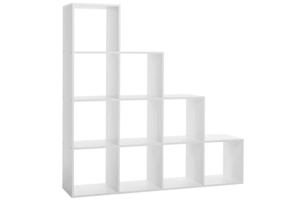 Regál s 10 priehradkami v bielej farbe má kaskádovitú konštrukciu, ktorú možno umiestniť ľubovoľne pozdĺžne k stene alebo kolmo. Priehradky je možné navyše ľubovoľne doplniť úložnými boxmi.