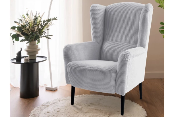Elegantné kreslo typu ušiak poskytne príjemné komfortné sedenie v akejkoľvek miestnosti bytu. Vysoké operadlo dopĺňajú zaoblené bočné podrúčky a masívne nohy. Očalúnené mäkkučkou štruktúrovanou látkou vo farbe svetlo šedá, ktorá je veľmi útulná.