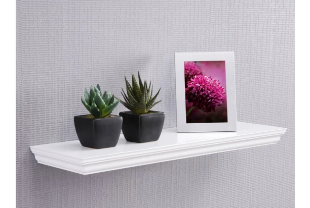 Nástenná polica so šírkou 60 cm z programu Landwood – tradične biely nábytok s okrasnou rímsou v romantickom vidieckom štýle. Vytvárajte si tak ľahko pôvabné interiery s nádychom tradície a kúzlom atmosféry vidieka.