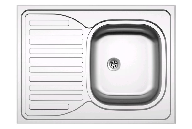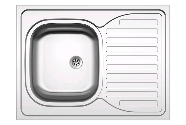 Nástavný nerezový celoplošný drez Sinks CLP-D 800 M v otočnom prevedení s rozmermi 800×600 mm, s malou výpusťou a 0,5 mm plechom. Hĺbka vane drezu je 150 mm. Drez je určený pre nástavnú montáž na 80 cm širokú drezovú skrinku.