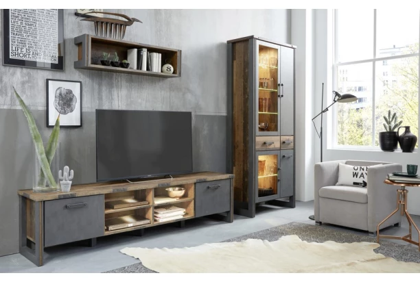 - dekor korpus/predné plochy: imitácia brúseného kovu (grafitovo-šedá)/vintage optika drevených lát