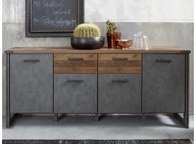 Komoda so zásuvkami z kolekcie Prime v industriálnom štýle upúta pozornosť už na pohľad skvelou vintage optikou drevených lát a brúseného kovu. Nábytok tak dokonale podčiarkne osobitosť vášho interiéru.