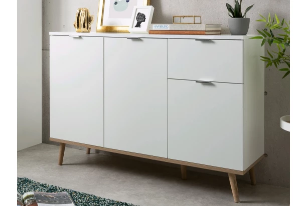 Skrinka so zásuvkou z kolekcie Göteborg v obľúbenom škandinávskom štýle – čisté biele línie nábytku ,podčiarkujú masívne drevené nôžičky s útulným dubovým drevodekorom, vďaka ktorým pôsobí nábytok vzdušne a zároveň veľmi elegantne.