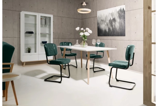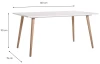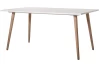 Obdĺžnikový jedálenský stôl s rozmerom 160×90 cm z kolekcie Göteborg v obľúbenom škandinávskom štýle – čisté biele línie stola, podčiarkujú masívne drevené nohy s útulným dubovým drevodekórom, vďaka ktorým pôsobí nábytok vzdušne a zároveň veľmi elegantne.