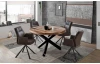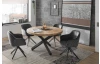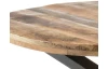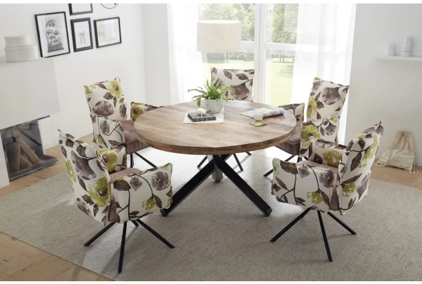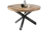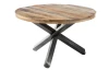 Okrúhly jedálenský stôl s priemerom 130 cm v štýlovej vintage optike bude zaujímavým stredobodom Vašej jedálne. Mohutne pôsobiaci stôl je vyrobený z masívneho exotického dreva so zámerne prirodzeným štruktúrovaným povrchom. Tmavá kovová podnož dodáva stolu veľmi dobrú stabilitu.
