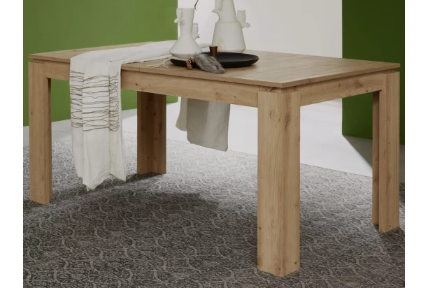 Priestranný jedálenský stôl Universal má funkciu rozkladu, pevnú konštrukciu s obľúbenou optikou širokých rámov. Pre moderné i klasicky zariadený interiér. Vyrobený v útulnom dekore dub Wotan.