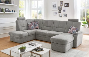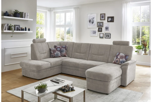 Sedacia súprava Skin v tvare U sa vďaka svojim kompaktným rozmerom prispôsobí aj menším priestorom, v ktorých bude pôsobiť elegantne. Vysoko kvalitné pružinové jadro s polyuretánovou penou zasadené do konštrukcie z tvrdého dreva zaisťuje vysoký komfort sedenia. Sedačka je očalúnená látkou v optike brúsenej kože vo farbe svetlo béžová. Vrátane dvoch podhlavníkov, rozkladacej funkcie a úložného priestoru pod ľavým otomanom.