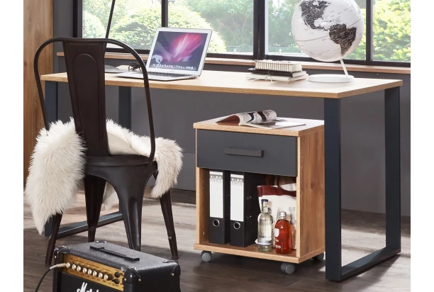 Písací stôl moderný nábytok v duchu mestského industriálneho štýlu si obľúbia nielen mladí ľudia. Útulný dubový drevodekor dopĺňa stabilná kovová podnož v čiernom prevedení.