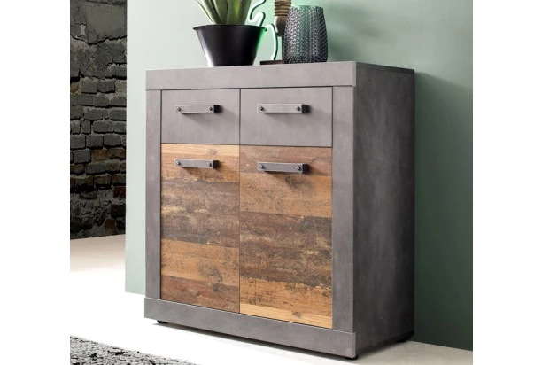 Skrinka so šírkou 82 cm v industriálnom štýle upúta pozornosť už na pohľad skvelou vintage optikou drevených lát a brúseného kovu. Nábytok tak dokonale podčiarkne osobitosť vášho interiéru. Poskytuje univerzálny vnútorný priestor pre ukladanie akýchkoľvek vecí.