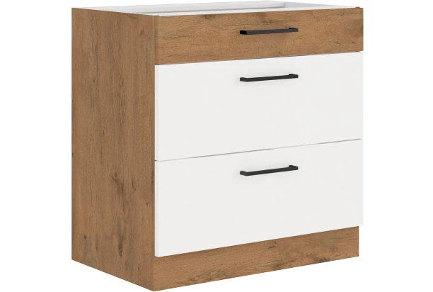 Dolná kuchynská skrinka so šírkou 80 cm v prevedení biely vysoký lesk a dub lancelot z kuchynského programu Vigo. Kuchyňu možno ľahko naplánovať z pohodlia vášho domova s možnosťou kombinácie elementov medzi sebou.
