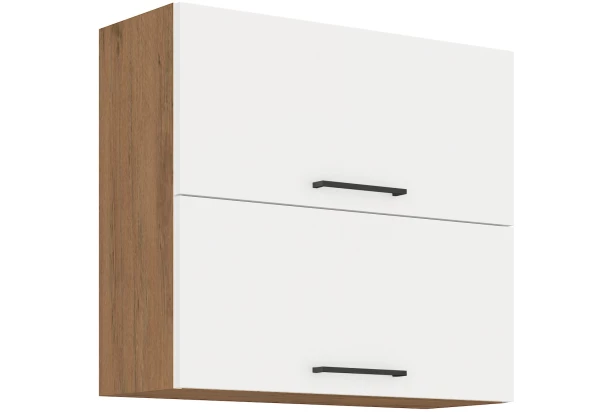 Horná kuchynská skrinka so šírkou 80 cm v prevedení biely vysoký lesk a dub lancelot z kuchynského programu Vigo. Kuchyňu možno ľahko naplánovať z pohodlia Vášho domova s možnosťou kombinácie elementov medzi sebou.