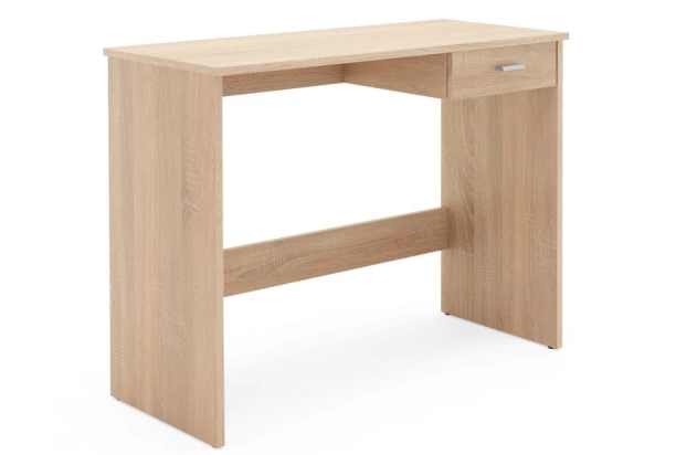 Malý písací stôl v dekore dub sonoma s celkovou šírkou 89 cm nájde svoje miesto v každej miestnosti. Obsahuje jednu úložnú zásuvku a poslúži pre klasické písanie, prácu na notebooku alebo aj ako napríklad kozmetický stolík. Jednoducho praktický a stabilný.