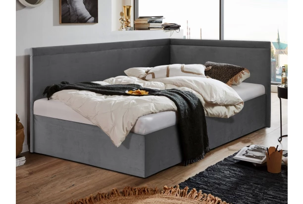 Rohová posteľ Travis pravá 120x200, šedá látka