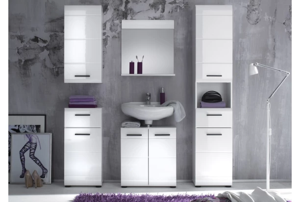Kúpeľňová stojacie skrinka Skin, lesklá biela