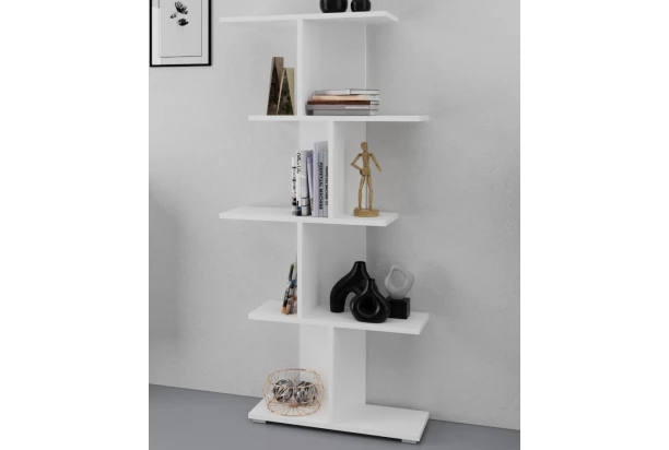Vysoký regál má zaujímavú členitú konštrukciu v bielej farbe a poslúži ideálne na dekorácie aj knižky. Použitím viacerých regálov vedľa seba môžete vytvárať zaujímavé kompozície.