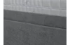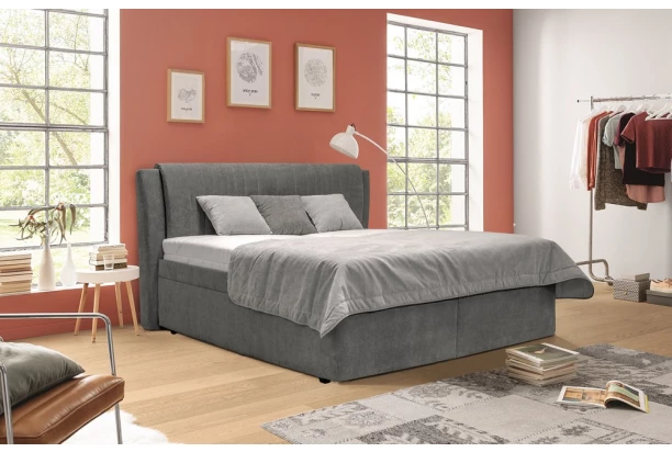 Moderná dvojlôžková posteľ o rozmere 160×200 cm je očalúnená príjemne mäkkou látkou v šedej farbe. Lôžko v komfortne vyššej polohe dopĺňa mäkko vypolstrované čelo s prešitím. Posteľ je vybavená polohovateľnými roštmi a kvalitnými matracmi pre pohodové spanie. Úložné priestory poslúžia napríklad pre uschovanie posteľnej bielizne.