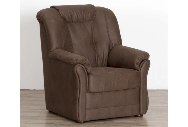 Kreslo v klasickom elegantnom štýle pre všetkých, ktorí vsádzajú na kvalitu a zároveň vysokú mieru pohodlia. Očalúnenie hnedou látkou v zaujímavej optike kože a doplnené dekoratívnym prešitím.