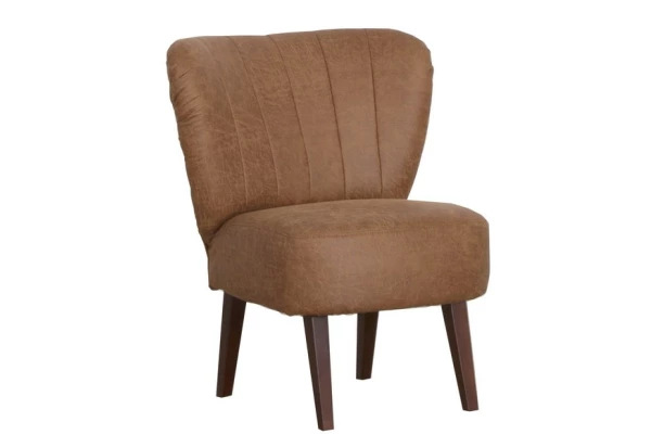 Malé a zároveň veľmi štýlové – kreslo na drevených nôžkach nájde svoje miesto takmer v každej miestnosti. Pohodlne zaoblený sedák očalúnenie svetle hnedou látkou v optike brúsenej kože. Kresielko tak prakticky poslúži napríklad v priestore obývačky, spálne alebo tiež v predsieni.