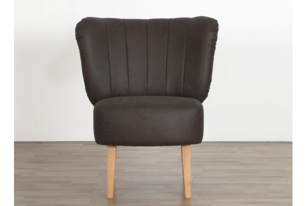 Malé a zároveň veľmi štýlové – kreslo na drevených nôžkach nájde svoje miesto takmer v každej miestnosti. Pohodlne zaoblený sedák očalúnenie tmavohnedou látkou v optike brúsenej kože. Kresielko tak prakticky poslúži napríklad v priestore obývačky, spálni alebo tiež v predsieni.