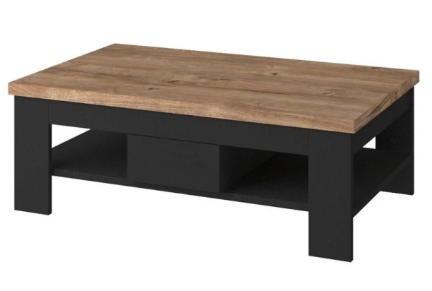 Ak chcete kvalitný a zároveň moderný dizajnový nábytok, potom je konferenčný stolík Boston práve pre vás. Obsahuje priehradky a úložné zásuvky. Vyrobený v kombinácii matne čiernej farby a útulného drevodekoru dub ribbeck.