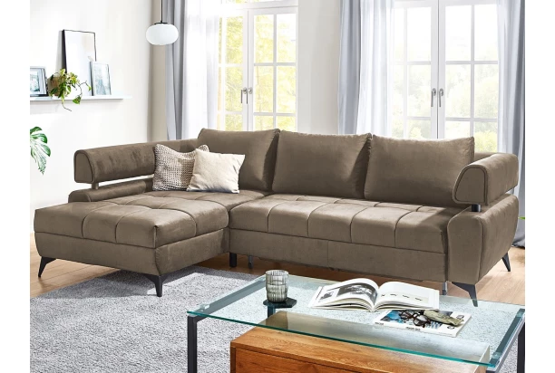 Atraktívna rohová sedacia súprava Paris je nielen pohodlná, ale aj zaujímavá na pohľad. Vzdušný dizajn tvarov dotvára veľké vankúše, moderné kovové nohy, dekoratívny prešiv a priestranný otoman. Sedačka tvorí ľavý roh a je očalúnená kvalitnou látkou v lesklej optike zamatu v odtieni svetlo hnedá. Poteší aj z praktickej strany, vďaka úložnému priestoru a rozkladacej funkcii na príležitostné lôžko.