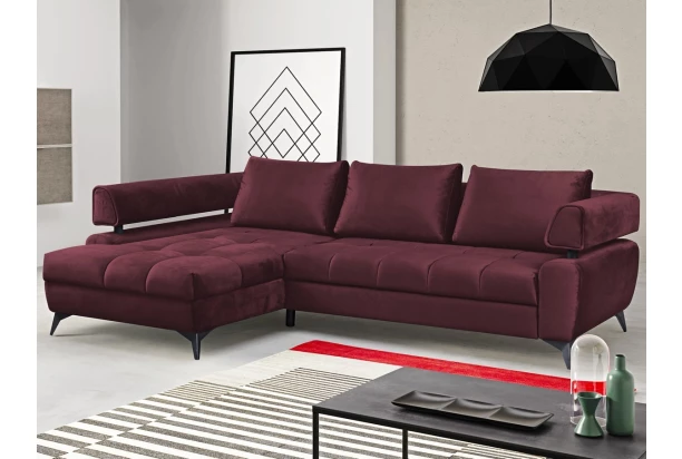 Atraktívna rohová sedacia súprava Paris je nielen pohodlná, ale aj zaujímavá na pohľad. Vzdušný dizajn tvarov dotvára veľké vankúše, moderné kovové nohy, dekoratívny prešiv a priestranný otoman. Sedačka tvorí ľavý roh a je očalúnená kvalitnou látkou v lesklej optike zamatu v odtieni vínová. Poteší aj z praktickej strany, vďaka úložnému priestoru a rozkladacej funkcii na príležitostné lôžko.