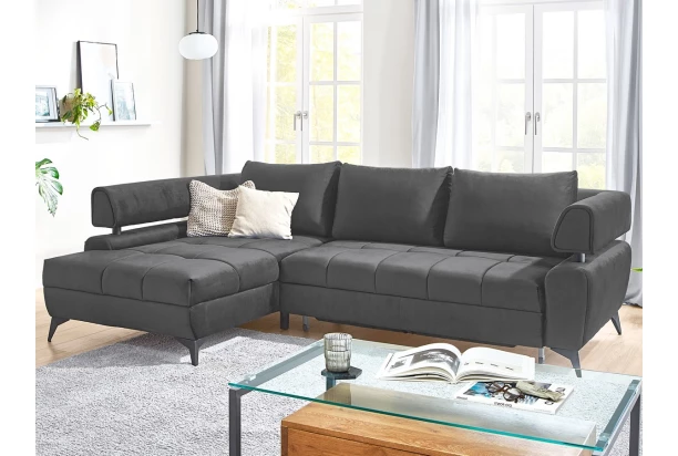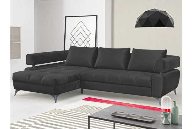 Atraktívna rohová sedacia súprava Paris je nielen pohodlná, ale aj zaujímavá na pohľad. Vzdušný dizajn tvarov dotvárajú veľké vankúše, moderné kovové nohy, dekoratívny prešiv a priestranný otoman. Sedačka tvorí ľavý roh a je očalúnená kvalitnou látkou v lesklej optike zamatu v odtieni antracitová tmavo šedá. Poteší aj z praktickej strany, vďaka úložnému priestoru a rozkladacej funkcii na príležitostné lôžko.