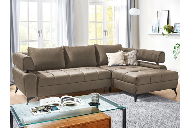 Atraktívna rohová sedacia súprava Paris je nielen pohodlná, ale aj zaujímavá na pohľad. Vzdušný dizajn tvarov dotvárajú veľké vankúše, moderné kovové nohy, dekoratívny prešiv a priestranný otoman. Sedačka tvorí pravý roh a je očalúnená kvalitnou látkou v lesklej zamatovej optike v odtieni svetlo hnedá. Poteší aj z praktickej strany, vďaka úložnému priestoru a rozkladacej funkcii na príležitostné lôžko.
