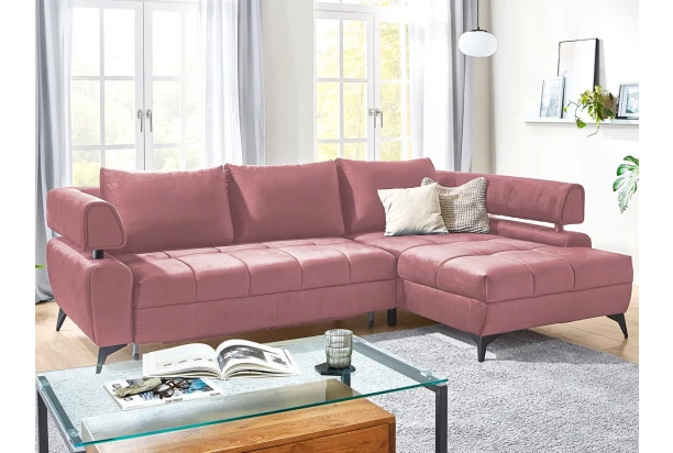 Atraktívna rohová sedacia súprava Paris je nielen pohodlná, ale aj zaujímavá na pohľad. Vzdušný dizajn tvarov dotvárajú veľké vankúše, moderné kovové nohy, dekoratívny prešiv a priestranný otoman. Sedačka tvorí pravý roh a je očalúnená kvalitnou látkou v lesklej zamatovej optike v odtieni staroružová. Poteší aj z praktickej strany, vďaka úložnému priestoru a rozkladacej funkcii na príležitostné lôžko.