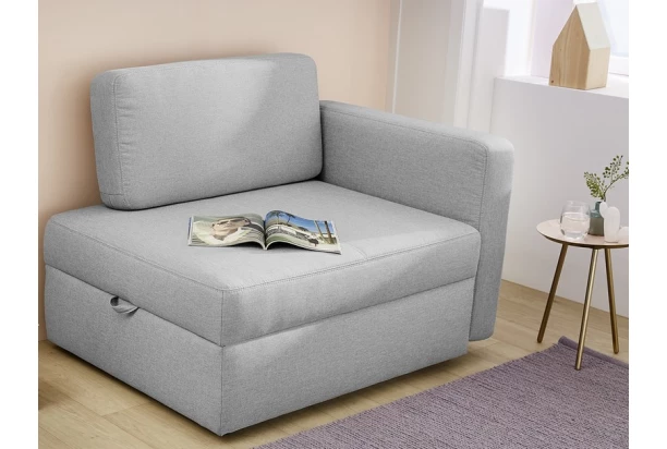 Praktické rozkladacie kreslo, oceníte vy i vaša návšteva – ľahko rozložíte na pohodlné lôžko pre hostí. Očalúnené svetlo šedou tkaninou a doplnené oporným vankúšom. Úložný priestor pod sedákom, využijete napríklad pre uschovanie posteľnej bielizne alebo sezónnych vecí.