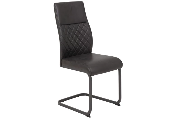 Komfortná jedálenská stolička na stabilnej kovovej podnoži je očalúnená látkou v optike brúsenej kože vo farbe antracitová. Štýlový dizajn dopĺňa kosoštvorcový prešiv na príjemne tvarovanom operadle.