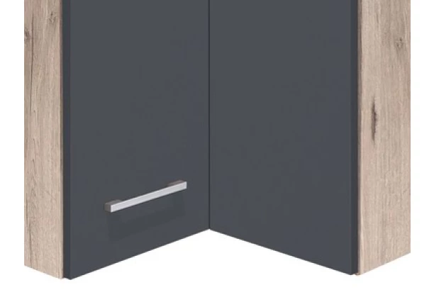 Horná rohová kuchynská skrinka so šírkou 60 cm z moderného kuchynského programu Tiago – útulnú kombináciu dekoru dub san remo a šedej farby ,dopĺňa úchyt v šedom alu prevedení. Elementy kuchynského programu Tiago, môžete medzi sebou ľubovoľne kombinovať a zostaviť si tak kuchyňu podľa vašich individuálnych potrieb a priestorových možností.