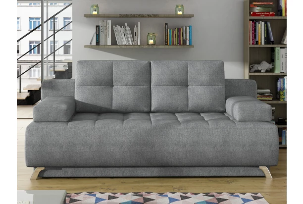 Moderná pohovka s atraktívnym prešitím komfortného sedadla a oporných vankúšov. Rozkladacia funkcia na príležitostné lôžko uspokojí vašu návštevu a do úložného priestoru môžete uschovať lôžkoviny alebo sezónne veci. Očalúnená mäkkučkou látkou vo svetlo šedom odtieni.