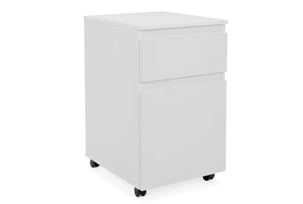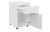 Úložný kontajner z programu Image – minimalistický dizajn nábytku je úplne univerzálny a hodí sa do každého moderného interiéru. Tento úložný kontajner na kolieskach je vyrobený v bielej farbe a ľahko ho môžete premiestniť pod konštrukciu písacieho stola alebo vedľa neho.