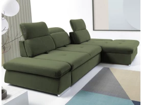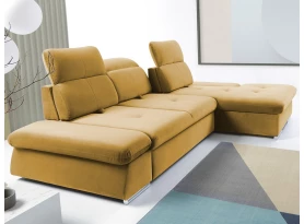 Komfortná rohová sedacia súprava s otomanom vľavo, zaujme moderným zaobleným dizajnom. Najväčšou prednosťou sú funkcie polohovania sedačky – vďaka nim si ľahko prispôsobíte každodenné pohodlie, podľa vašej aktuálnej potreby. Obľúbite si funkcie polohovania sedadla, polohovanie horných opierok a polohovanie bočných podrúčiek. Rozkladaciu funkciu na lôžko alebo úložný priestor, naopak oceníte kvôli praktickosti. Sedačka je očalúnená odolnou látkou vo farbe horčicová žltá, ktorá je veľmi príjemná na dotyk.