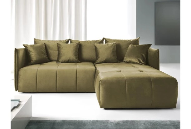Rohová sedacia súprava s atraktívnym prešitím a mnohými vankúšmi pôsobí útulne. Očalúnenie kvalitnou látkou v lesklej optike machovo zeleného zamatu. Rozmerovo ideálna takmer do každého priestoru. Sami si určíte, či chcete umiestniť otoman na pravú alebo ľavú stranu sedačky. Vrátane praktickej rozkladacej funkcie na lôžko i úložného priestoru pod sedákom.