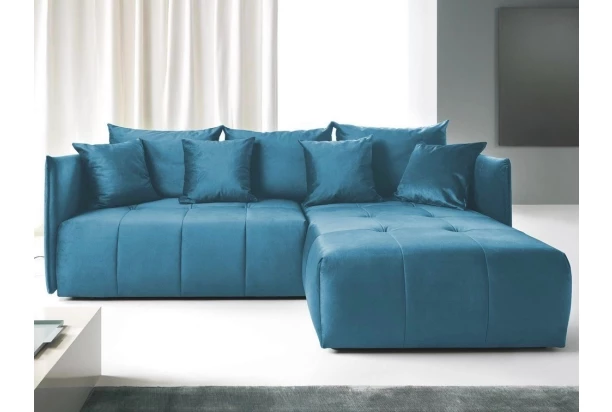 Rohová sedacia súprava s atraktívnym prešitím a mnohými vankúšmi pôsobí útulne. Očalúnenie kvalitnou látkou v lesklej optike modrého zamatu. Rozmerovo ideálna takmer do každého priestoru. Sami si určíte, či chcete umiestniť otoman na pravú alebo ľavú stranu sedačky. Vrátane praktickej rozkladacej funkcie na lôžko i úložného priestoru pod sedákom.