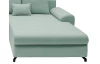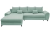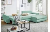 Atraktívna rohová sedacia súprava so zaoblenými tvarmi ponúka príjemne mäkký štýl sedenia pre Váš každodenný komfort. Očalúnená látkou vo farbe mentolovo zelená. Ďalšou pridanou hodnotou je praktický úložný priestor a navyše rozkladacia funkcia – vďaka nej sa sedačka ľahko premení na príležitostné lôžko napríklad na návštevu. Vďaka univerzálne riešenej konštrukcii je možné sedačku zostaviť ako pravý alebo ľavý roh, respektíve s otomanom na pravej alebo ľavej strane – sedačka sa tak lepšie prispôsobí priestorovým možnostiam Vašej obývačky.