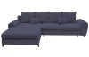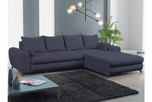 Atraktívna rohová sedacia súprava so zaoblenými tvarmi ponúka príjemne mäkký štýl sedenia pre Váš každodenný komfort. Očalúnená látkou vo farbe slivková tmavo modrá. Ďalšou pridanou hodnotou je praktický úložný priestor a navyše rozkladacia funkcia – vďaka nej sa sedačka ľahko premení na príležitostné lôžko napríklad na návštevu. Vďaka univerzálne riešenej konštrukcii je možné sedačku zostaviť ako pravý alebo ľavý roh, respektíve s otomanom na pravej alebo ľavej strane – sedačka sa tak lepšie prispôsobí priestorovým možnostiam Vašej obývačky.